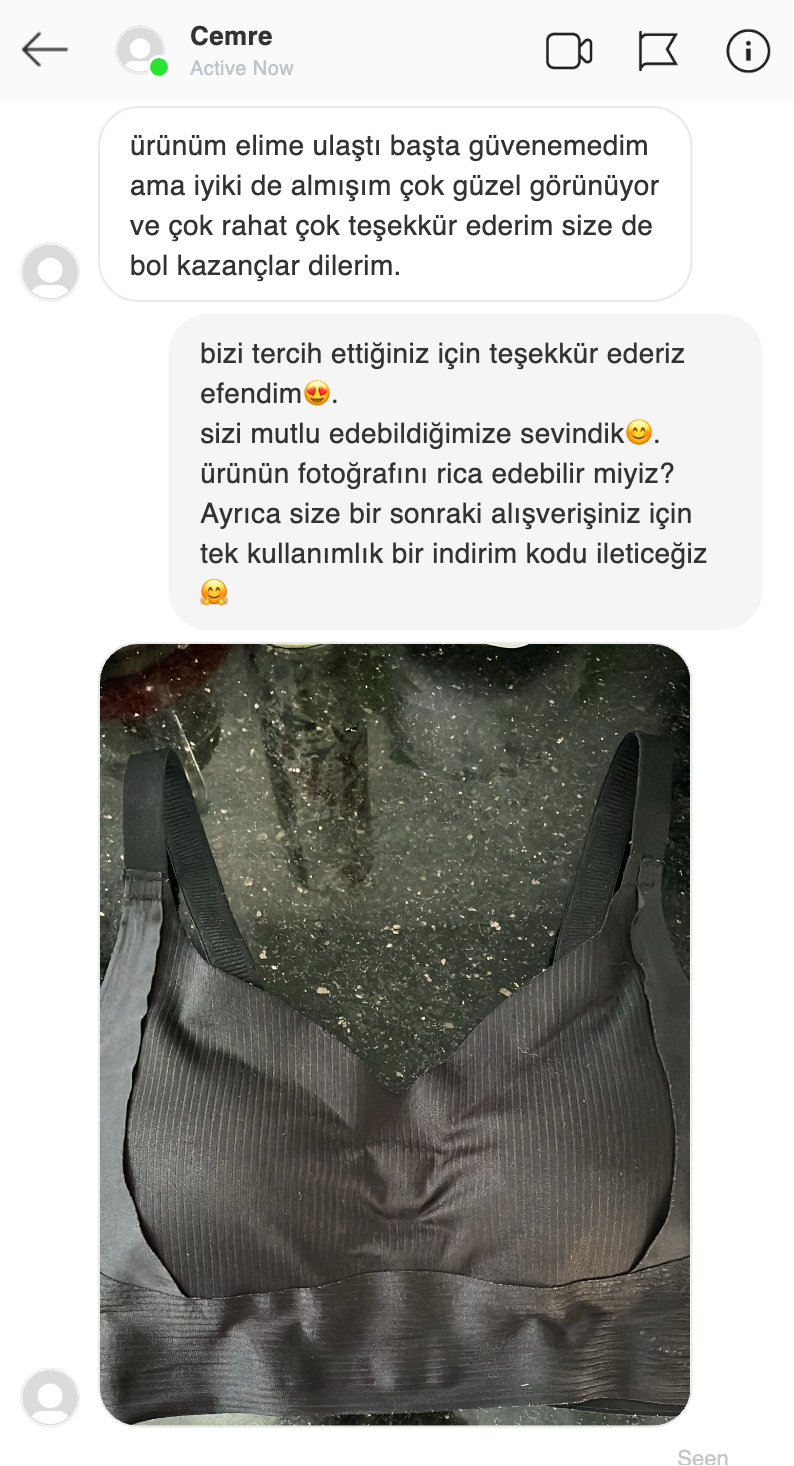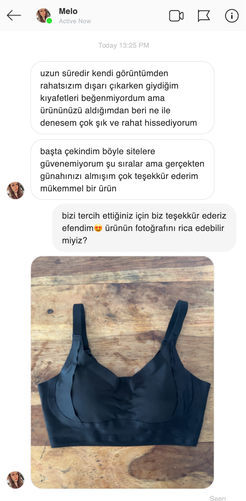toparlayıcı konforlu telsiz sütyen ile kendini daha özgüvenli hissettiğini belirtti.